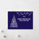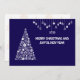 Greeting wish card Merry chrsitmas and Joyful New Year written in English in white font with christmas tree & balls on a purple background - editable text and background