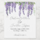 This custom wine bottle label features a beautiful botanical and enchanting floral wedding design. The background is a simple and elegant white with purple wisteria flowers bordering the top.