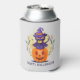 This charming Halloween can cooler features a purple witch cat wearing a pointed hat, playfully perched on top of a bright orange pumpkin. The festive phrase "Happy Halloween" ties it all together with spooky sweetness. Perfect for cat lovers, Halloween fans, and those who enjoy a cute twist on classic spooky season style.