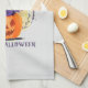 This charming Halloween kitchen towel features a purple witch cat wearing a pointed hat, playfully perched on top of a bright orange pumpkin. The festive phrase "Happy Halloween" ties it all together with spooky sweetness. Perfect for cat lovers, Halloween fans, and those who enjoy a cute twist on classic spooky season style.