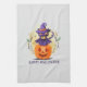Purple Witch Cat on Pumpkin – Happy Halloween Tea Towel