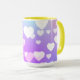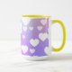 Beautiful pastel hearts coffee and tea mug two toned with yellow interior and handle.
