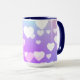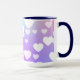 Beautiful pastel hearts coffee and tea mug two toned with blue interior and handle.