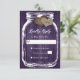 Purple Wood Mason Jar Hearts Initials Wedding RSVP Card