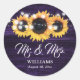 Purple Wood Mr and Mrs Sunflower Wedding Classic Round Sticker