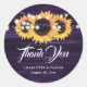Purple Wood Sunflower Wedding Thank You Classic Round Sticker