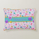 What a pretty baby shower gift this would make with the little girl's name personalised on this sweet cushion with pink, purple, and teal accents.