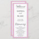 The front of the program includes the couples' names, wedding date, city and state details, and the order of the ceremony. The back of the program lists the names of the wedding party. The main text of the program is in a simple black block font, while the words 'Welcome', 'Ceremony', and 'Wedding Party' are in a pretty black modern script font. The couple's names are highlighted in a bold black simple font with letter spacing that makes their names stand out.