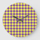 Purple Yellow Chequered Diamond Pattern Large Clock