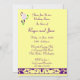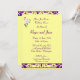 This wedding shower you card is decorated with a bride's bouquet superimposed on a lemon background and purple damask bar.