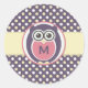 Purple Yellow Night Owl Cartoon Monogram Stickers