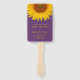 Purple and yellow sunflower wedding program fan. Simple wedding program fan design that features a beautiful yellow sunflower paired with a violet purple background. Perfect for summer or fall / autumn.