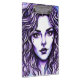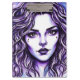 This whimsical clipboard features a soft dreamy watercolor print in vibrant shades of purple, blue, grey, black.