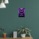 This vibrant poster features a whimsigoth inspired oil painted print of a cat surrounded by purple.