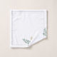 Design features a bouquet of eucalyptus greenery and beautiful hydrangeas with a lite grey border.