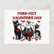 Three black cats with red hearts on their chests and tails surrounded by other red hearts and text that reads Purr-fect Valentines Day on valentine T-shirts, mugs, cards, stickers, pillows, keepsakes, and much more!