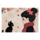 This digital illustration captures the special bond between a young woman and her beloved cat.