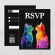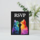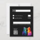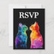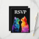 📅 The front features the bold caption "RSVP", along with a clear response-by date, making it easy for guests to plan and reply in time. Set against a sleek black backdrop, the focal illustration is pure joy: two rainbow-hued cats gazing into each other’s eyes with affectionate curiosity. Their pose is gentle yet intentional—a mirrored moment of connection, their colour-stripe tails forming a subtle heart at the base, symbolising love without boundaries.