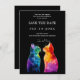 🎨 On the front, guests are welcomed with the caption "Kindly Respond" and the RSVP deadline, elegantly framed above a show-stopping illustration: two cats painted in luminous LGBT colours, gazing into each other’s eyes with quiet affection. Their matching poses and entwined tails form a heart at the base, capturing the essence of soulmates in the softest, sweetest way. The deep black background allows the rainbow hues to glow brilliantly—making the artwork both a symbol of pride and a celebration of connection.