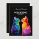 🐾 Purrfectly Yours – Wedding Details Enclosure Card From the colourful and charming Purrfectly Yours: A Rainbow Love Story collection, this vertical enclosure card blends heartfelt celebration with modern convenience. On the front, set against a dramatic black background, two rainbow-hued cats lovingly gaze at one another, one in warm sunset tones and the other in cool celestial hues. Their gentle connection symbolises pride, affection, and the joy of finding your purrfect match.