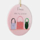 A cute ornament for a purse lover. A pink background featuring three purses in different styles and colours. Customise as desired.
