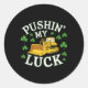 Pushin My Luck St. Patricks Day Bulldozer Clover D Classic Round Sticker