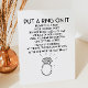 This is a "Put A Ring On It" Bridal Shower Game sign. Guests should take one ring and wear it. The Rule is they can't say "WEDDING" or "BRIDE", whoever slips up will have to give up their rings. The way to win this ladies' game is to collect the most Bling!.