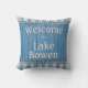 Add the name of your lake to this beautiful blue and grey pillow. Every lake house needs one.