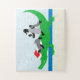 It's a whimsical alligator scene ready to put together. It measures 11 x 14 with 30 big puzzle pieces.