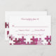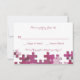 A coordinating response card featuring shades of pink puzzle pieces. <a href='http://www.freepik.com/free-vector/puzzle-background-free-for-download_714024.htm'>Designed by Freepik</a>. <br/><br/>The card is easy to customise with your wording, font, font colour and choice of six paper types.<br/><br/>Not exactly what you're looking for? All our products can be custom designed to meet your needs at no extra charge.<br/><br/>Simply contact us at heartfelthelper@gmail.com<br/><br/>Coordinating products available: Puzzle Pieces Invitation