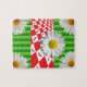 Puzzles Green Stripe, White Daisy, Red HeelsFloral