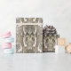 A snake pattern mimics the python's skin in an exotic dance of brown and white, reflecting nature's wild artistry.