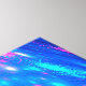 A pink and blue fractal interpretation of the Northern Lights reflected on the surface of the sea. Qaanaaq is a settlement in northern Greenland. Text reading, "Kalaallit Nunaat," the name for the island in Kalaallisut, the primary dialect, appears in glowing blue and white.
