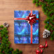 A pink and blue fractal interpretation of the Northern Lights and stars reflected on the surface of the sea. Text reading "Feliz Navidad" also appears in glowing blue and white. Qaanaaq is a settlement in northern Greenland.