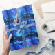 A pink and blue fractal interpretation of the Northern Lights and stars reflected on the surface of the sea. Text reading "S Rozhdestvom" (A Russian Christmas greeting) also appears in glowing blue and white. Qaanaaq is a settlement in northern Greenland.