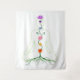 Wall tapestry of Human body chakra gates represented by their respective flowers and colours, esoteric conceptual art. Yoga and meditation. Colourful illustration on white background. Unauthorised use is prohibited. Copyright Alex Maxim / Maximimages.com