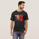 I give wanted to give this a 4 instead of a 5 because these Basic DARK T0shirts run unexpectedly SLIM or Narrow. Which is great if you do not have a potbelly, but I have a paunch. It isn't the shirt's fault that I've got a beer belly. The design and shirt itself is a quality cotton shirt. The color is more of a deep purple, but still a very pretty color. The Basic DARK T-shirts run a bit SLIMMER than the Basic Ts. The neck is a fraction narrower (or seems to be narrower) also. I'm a paunchy middle-aged woman and my neck is 12 inches (31cm) thick and the neckline fell about the same as in the photo of the man, and I had the desire to tug it a bit. So if you're a thick necked man or like loose shirts, be aware these are slimmer shirts. Once I get rid of my lockdown paunch it'll look great. The shirt washed well in cold water with no apparent bleeding. We don't have a dryer, so it hung dry. Did not shrink. Love the colors and the design. The design looks smaller on my shirt than it does on the model on-line. But still, it looks good on the shirt. The printing looks as it does on the model, just the size seems fractionally smaller. Washed garment in cold water, hung dry and design appeared unaffected.