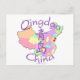 Qingdao of Shandong province on a colourful map of China includes the Chinese symbols for 'Qingdao' and its location is marked on the map with a heart and flag. A fun, unique gift! Designed by Hendrika of RedThreadMaps.com