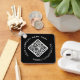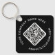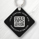 Double sided keychain with your QR code and custom text on a black or custom color background. Change fonts and font colors, move and resize elements with the design tool.
