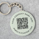 Light sage green, round keychains with your QR code and custom text. Change fonts and colours, move and resize elements with the design tool. NOTE! YOU NEED TO REPLACE THE QR CODE TEMPLATE WITH YOUR OWN QR CODE!