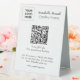 Simple Minimalist professional pedestal sign on white and black. The template has space for basic information like name, company name or professional service, website, phone, fax, location,  logo, and even instant appointment booking QR Code. With a single scan, your customers can access your service menu and real-time availability. Click on "personalise this template" for product customisation.