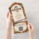 QR Code Arch Modern Retro 70s Floral Wedding All In One Invitation