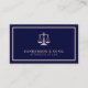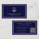 Lawyer legal conselor attorney at law firm elegant rose gold and navy blue business card with scales of justice logo, QR code, and simple modern minimalist typography. Suitable for a law firm, professional legal practitioner, judge, solicitor, or consultant.