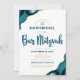 QR Code Bar Mitzvah Turquoise Agate Script White Invitation