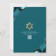 Be proud, rejoice and showcase this milestone of your favourite Bar Mitzvah! Send out this cool, unique, modern, personalised QR code invitation for an event to remember. Dark teal blue script typography, faux gold sans serif typography and a faux gold Star of David overlay simple, clean white background with turquoise blue agate accented with faux gold veins. On the back, a faux gold Star of David, additional turquoise blue agate and a scannable QR code for more info overlay turquoise teal blue. Personalise the custom text with your Bar Mitzvah’s name, date, venue information and website url. Guaranteed to add stylish fun to his special occasion!
