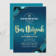QR Code Bar Mitzvah Turquoise Ombre Agate Script Invitation