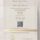 This all-in-one piece includes your monogram, personalized wedding website, and a QR code for fast and easy RSVP. The bottom section features a detachable Wedding Program card that guests can tear off and bring with them to the ceremony, eliminating the need for separate program cards and reducing printing waste.