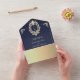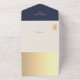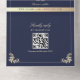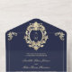 Elegant and luxurious, this navy blue and gold baroque all-in-one wedding invitation is designed for couples who want timeless sophistication with modern convenience. The ornate golden frame monogram on the front adds a royal touch, while the integrated RSVP card includes a scannable QR code for quick online responses and access to your wedding website. This envelope-style invitation folds neatly for mailing, featuring a matching navy and gold design with return address printing. A perfect blend of vintage grandeur and contemporary functionality, ideal for classic, luxury, and formal weddings.