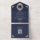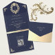 QR Code Baroque Navy Blue Gold Wedding All In One Invitation
