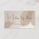 This artistic business card features beige neutral tones abstract art. The script emphasises the first letters of your name so it resembles a business card with initials. Templates for your name, title, phone number, mail and website address, QR-code to your website or social media account. Perfect for interior designers, skincare specialists, estheticians, graphic designers and landscaping.